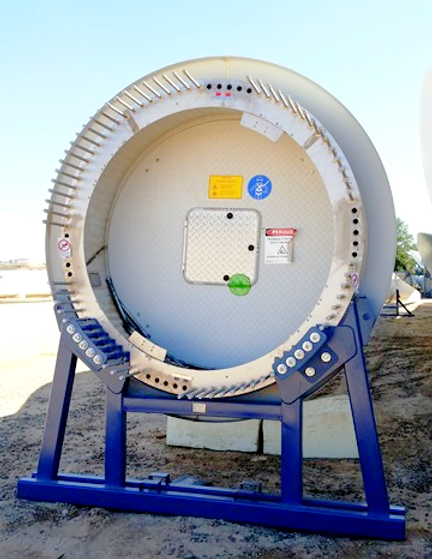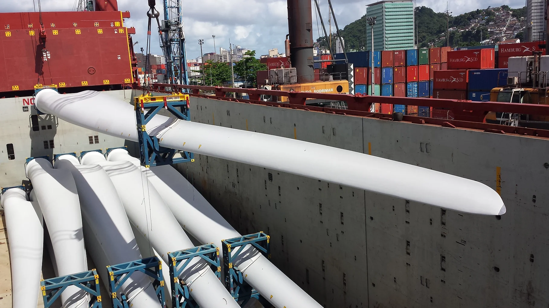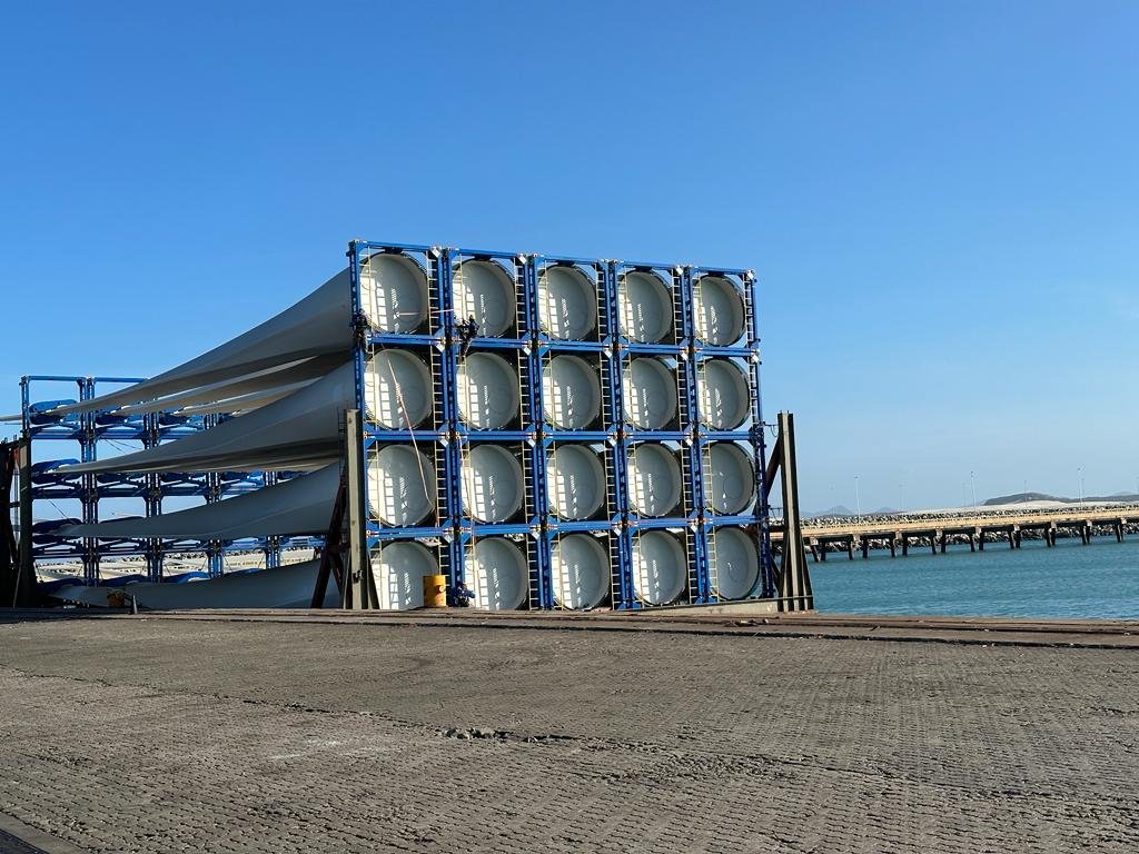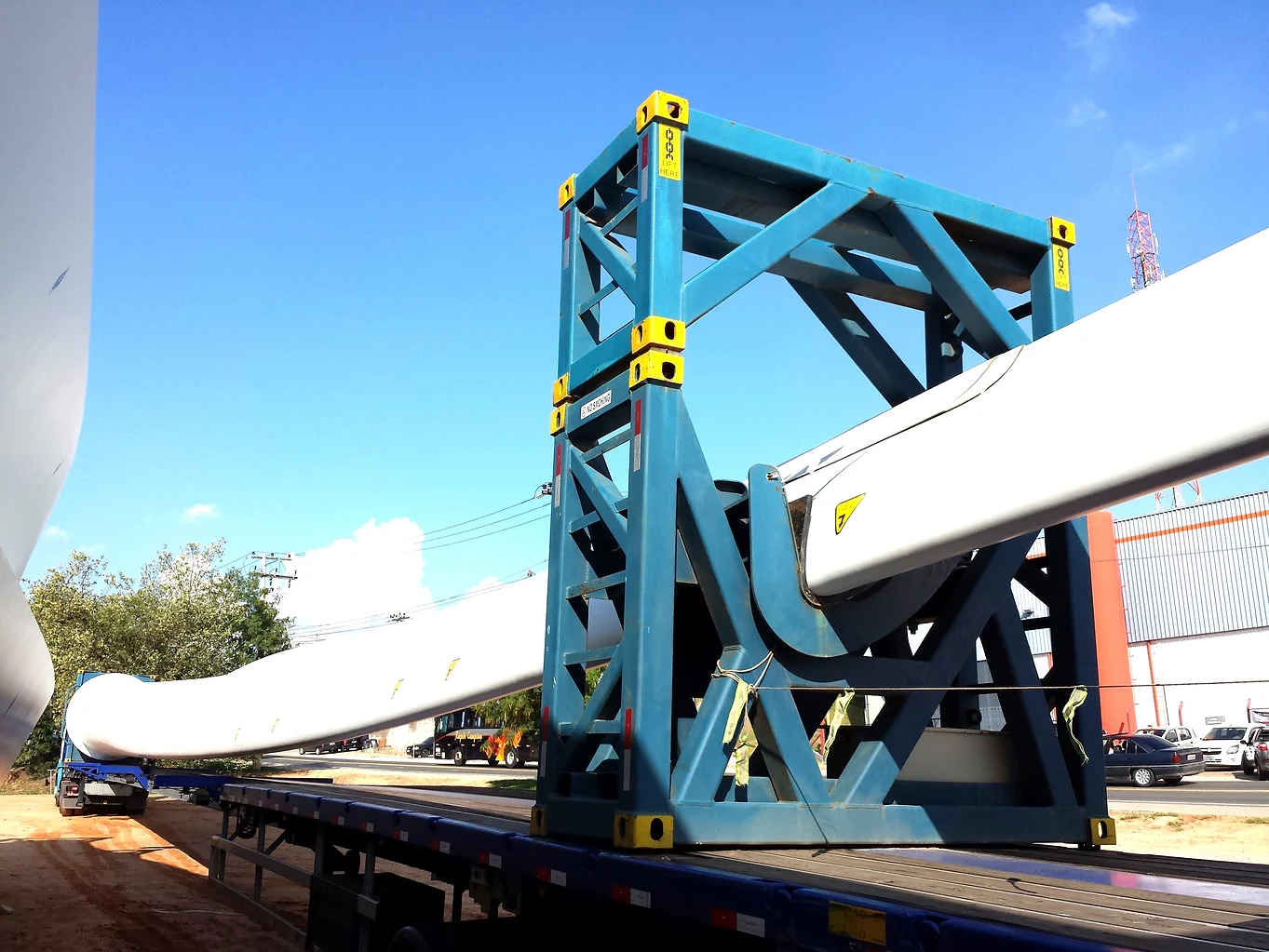 Produção de embalagens customizadas para o transporte de pás eólicas e estruturas de suporte destinadas a sites operacionais.